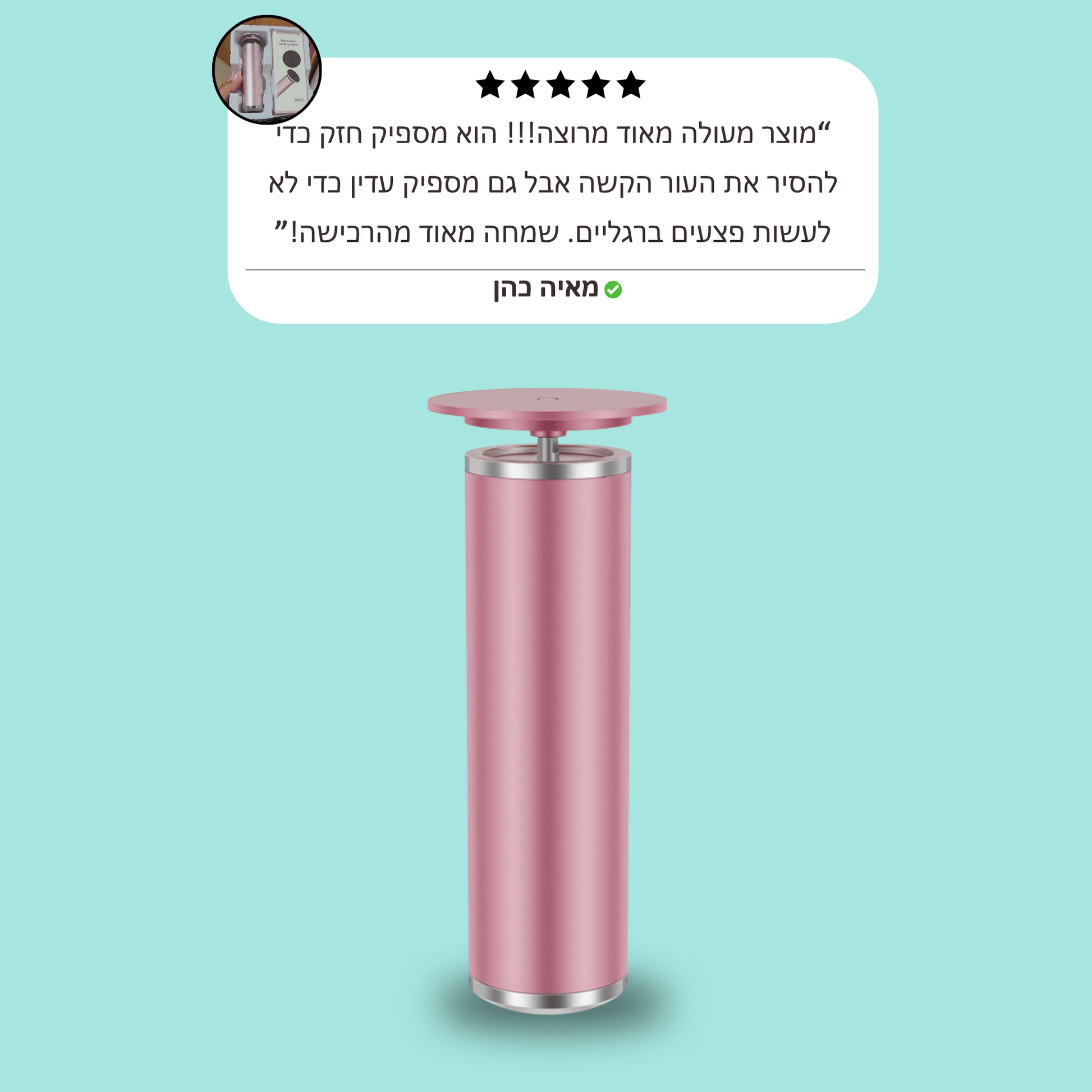 גלי איך זה מרגיש כשהעור חלק באמת. המכשיר שלנו מסיר עור יבש בדיוק מושלם ומשיב לרגליים שלך את המגע הרך - כמו אחרי טיפול מקצועי, בלי לצאת מהבית.